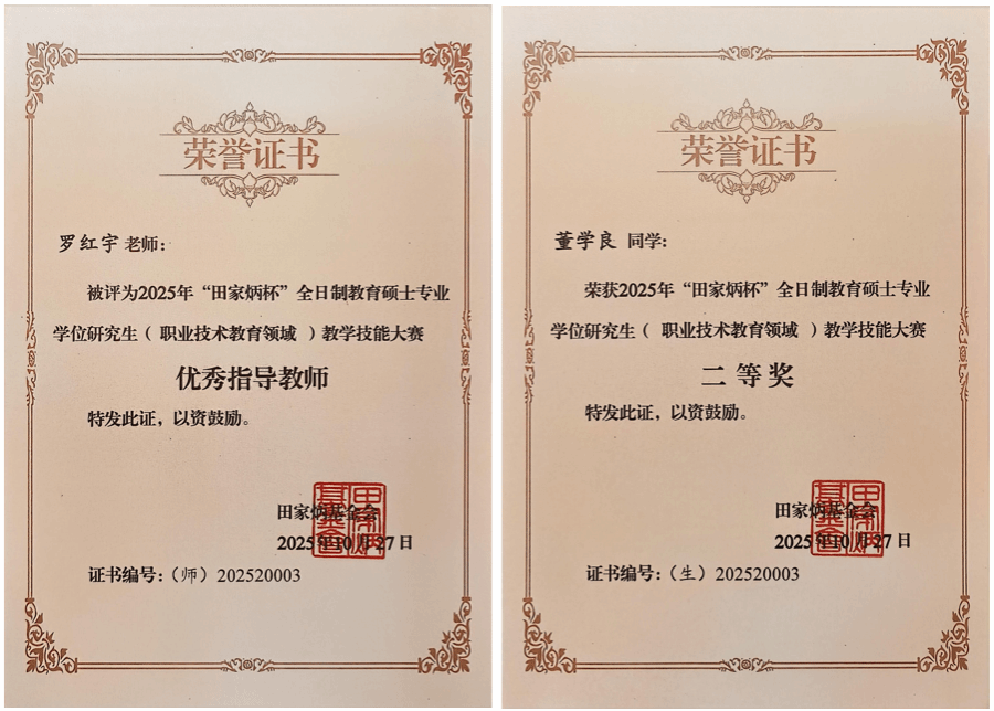 近日,2025年全国“田家炳杯”全日制教育硕士专业学位研究生(职业技术教育领域)教学技能大赛获奖名单正式公布,我校24级职业教育硕士董学良在赛事中荣获国家级二等奖第一名。