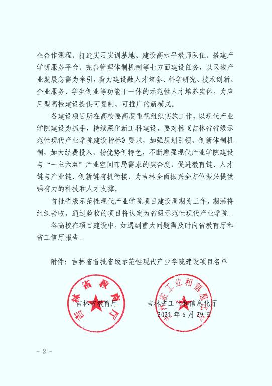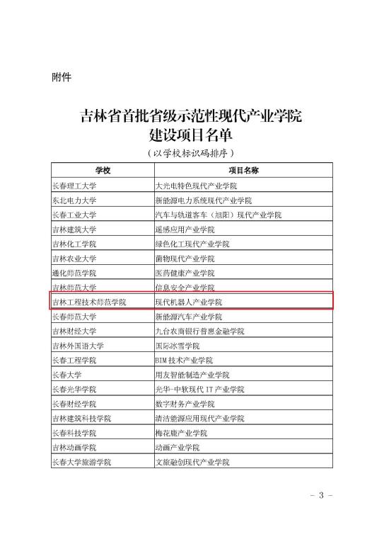 近日,吉林省教育厅、吉林省工业和信息化厅公布首批省级示范性现代产业学院建设项目名单,吉林省首批设立了20个省级示范性现代产业学院,我校现代机器人产业学院成功入选。