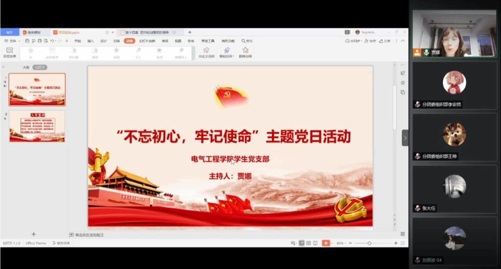 为深入学习贯彻习近平新时代中国特色社会主义思想,提高全体党员的爱党、爱国的浓厚情感,引导全体党员坚定理想信念,继承和发扬党的光荣传统,在中国共产党建党99周年来临之际,电气工程学院党总支在2020年7月2日通过网络平台,召开了“不忘初心,牢记使命”主题党日活动。
