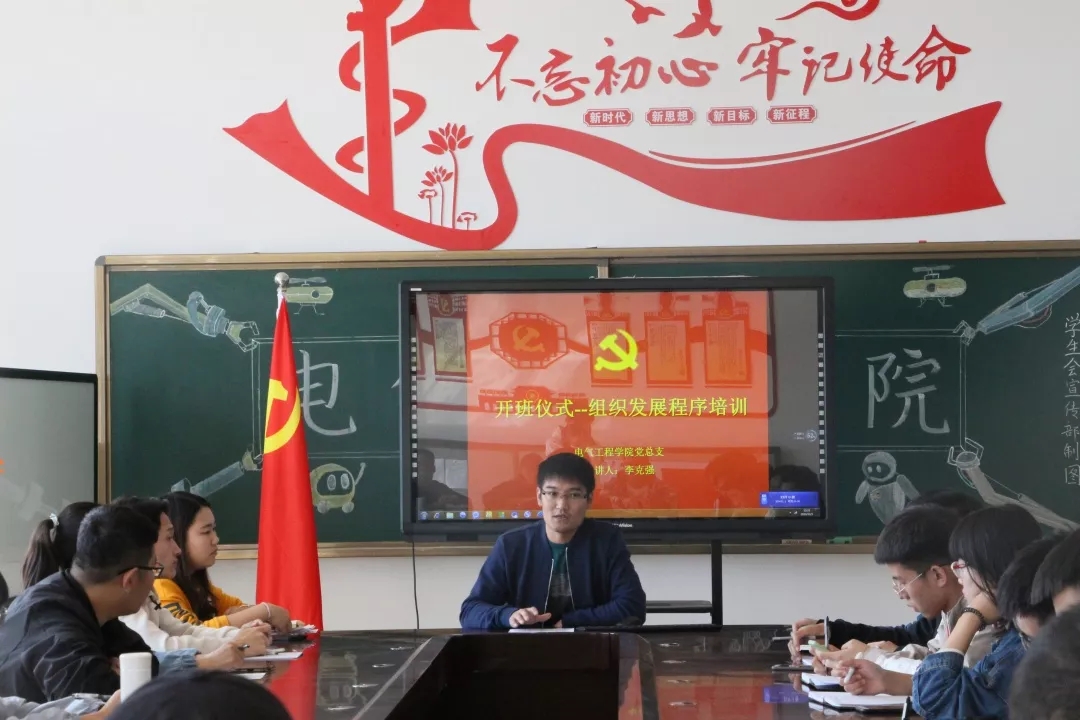 电气工程学院第53期二级党校开班仪式于2019年9月25日12时整,在电信楼407会议室正式举行,主持本次活动的是电气工程学院学生党支部书记李克强老师。
