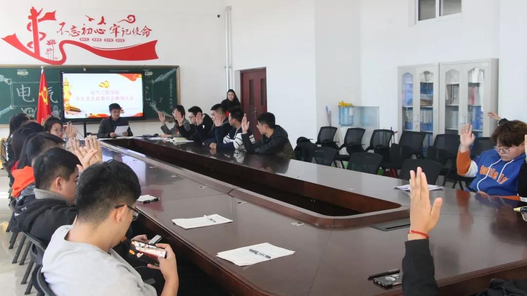 为加强党组织建设,贯彻党的民主集中制原则,提高党组织的战斗力,经电气工程学院党总支批准,电气工程学院学生党支部于2019年10月14日组织召开了电气工程学院学生党支部委员会换届大会。会议应到党员27人,实到23人,因病、因事请假4人,其中有表决权的正式党员7人。