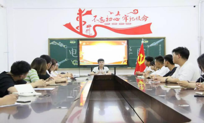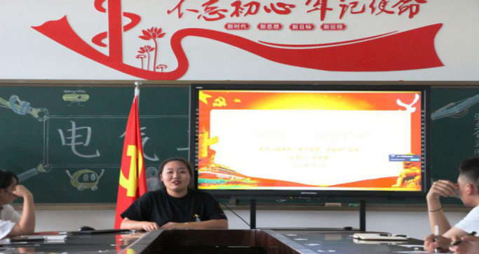 学生党员孙逍以“结合五爱教育,培养时代先锋”为主题,向同学们介绍了五爱教育以及现在社会电气类专业的就业方向,给出了最诚恳的建议,为同学们以后的就业方向点亮了启明灯。