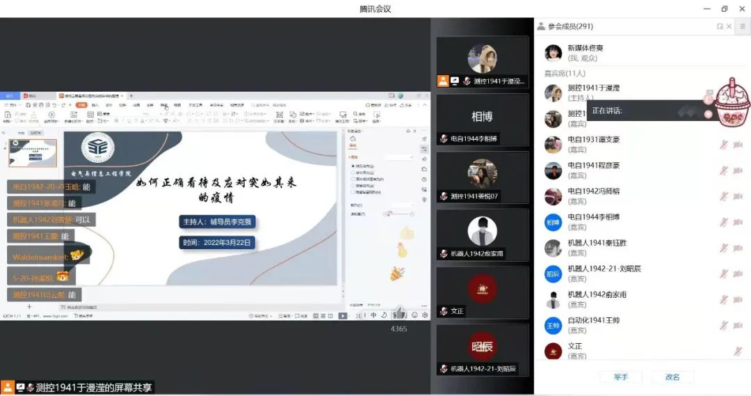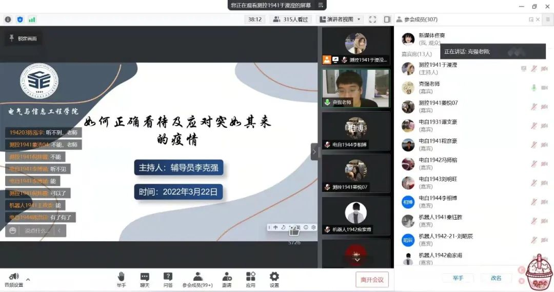 李老师结合当前疫情防控形势下,同学们在生理、认知、情绪、行为、观念等方面常见的心理反应与大家进行了讲解,同时,列举实例告诉同学们一些可操作性强而实用的心理调适策略,引导同学们要接纳现实,关注自我;理性知识,减少信息;规律作息,管理时间;加强沟通,获得支持;管理情绪,科学应对。