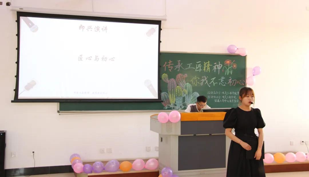 为弘扬并学习劳模工匠精神,加强锻炼同学们的演讲能力和语言表达能力,提高学生的综合能力,丰富校园文化生活。电气工程学院于2021年6月17日,在电信楼515举办了以“传承工匠精神,你我不忘初心”为主题的演讲比赛决赛。