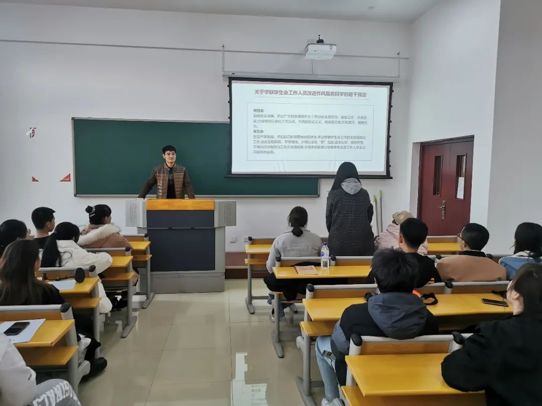 在会议中,李克强老师指出,学生会工作人员应当时刻牢记自身服务宗旨,恪守学生本分,永葆理想情怀,在日常工作学习中,要与同学们彼此帮助,互相尊重,摒弃庸俗习气。同时李老师号召全体学生工作人员关心社会时事,取长补短。“三人行必有我师”,在探索中求进步,在进步中律己。
