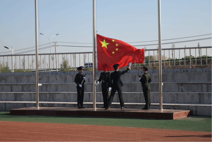 全体军训学生面让国旗行注目礼