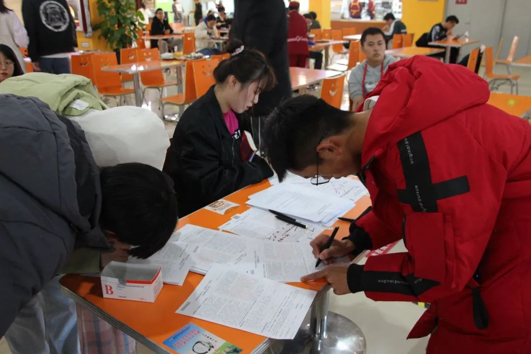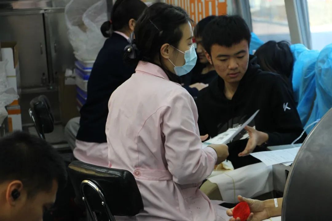 献血前,电气学院的学子们正井然有序的进行着血液检查,以保证参与献血的每位同学身体条件都满足标准,同学们热情积极的配合着工作人员准备着献血的有关事宜。