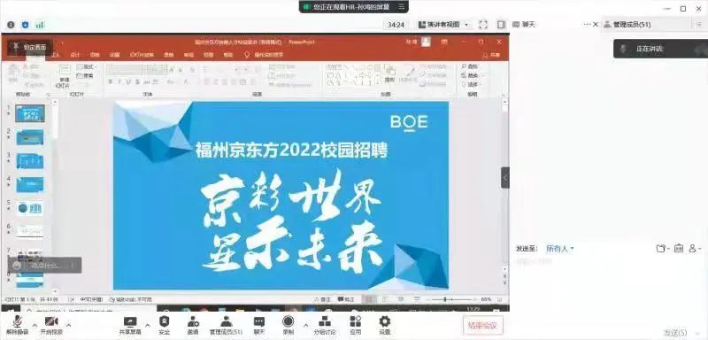 为了能让不同专业的同学们更精准地找到心仪的工作,使我院即将毕业的学生对不同职位更加了解,yl23411集团于5月4日利用腾讯会议召开新一轮的线上招聘会。此次会议邀请了福州京东方光电科技有限公司、福建兆元光电有限公司和杭州泰尚智能装备有限公司,全院全体毕业生参会。