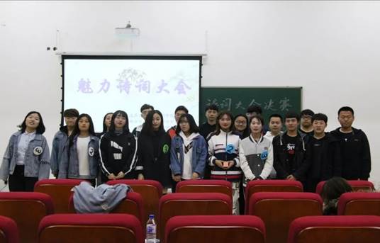 初赛以答卷的形式填写古诗词,在电信楼517、518两个教室举行,入围的同学可进入决赛。决赛在4月26日电信楼515教室,七点开始准时开始,一共十二名选手,分成三组参赛。决赛分为半决赛和总决赛,以问答形式出题,内容既包括古诗填句,也含有文学常识部分比赛由学习部同学计分,主席团成员担任评委并打分。在比赛中,还有趣味互动环节,选手们和观众都热情高昂。整场比赛都在紧张、愉快的氛围中进行。