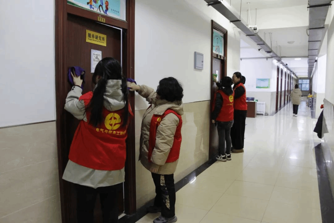 公共区域清洁组:对公寓寝室门等区域进行全面清洁,重点清理顽固污渍和小广告,为学生创造干净整洁的生活空间,引导大家自觉维护校园秩序,形成“人人爱清洁、处处讲文明”的良好氛围。